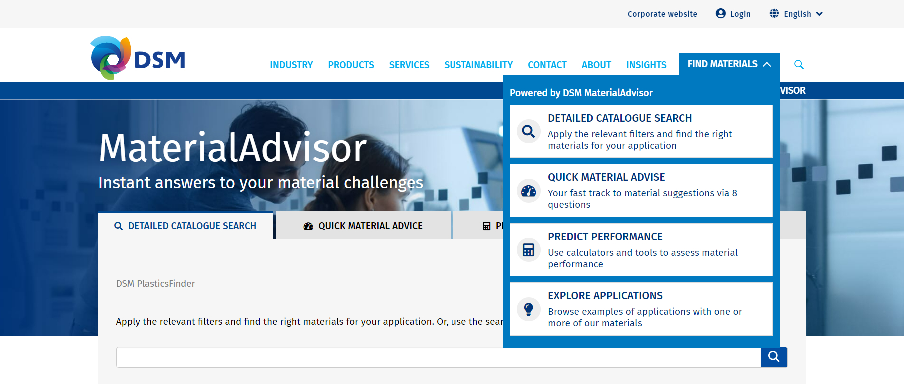 • QuickAdvisor, providing an initial, quick online material assessment in the early stages of a design process, based on the answers to eight questions. The tool exists alongside DSM’s well-known, data-rich, and property-based product catalog, PlasticsFinder.