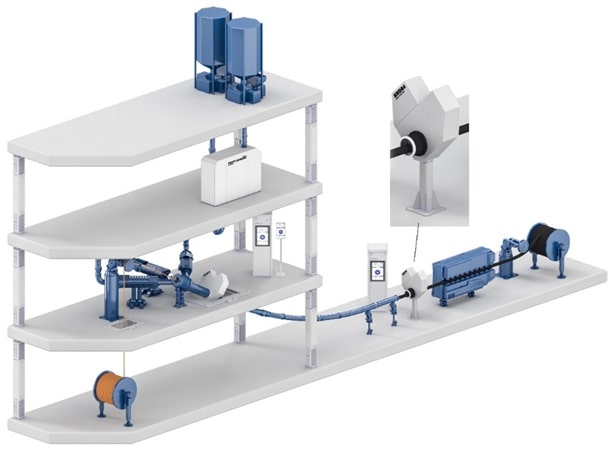 For a continuous and reliable quality control at the production of the medium, high, and extra-high voltage cables as well submarine cables in CV lines, SIKORA’s X‑RAY 8000 product family has set standards with more than 1,500 devices sold worldwide. The systems convince by precise and reliable measurements of concentricity, wall thickness, diameter, and ovality as well as by controlling cables with up to three layers.