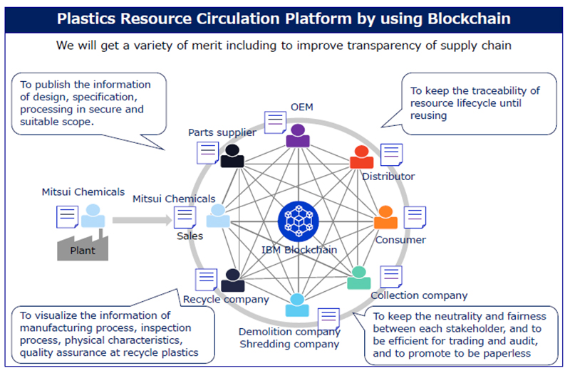 Upon building the resource circulation platform for plastic material traceability, Mitsui Chemicals and IBM Japan will work together toward demonstration testing.