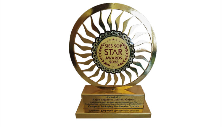 Rajoo Engineers Ltd, a pioneering force in the field of plastic processing machinery, has been recognized with the prestigious SIES SOP STAR 2023 Award for their groundbreaking innovation, the PENTAFOIL-POD-AX, the five layer (POD) blown film line for flexible packaging. The award from South India Education Society School of Packaging, Mumbai (SIES- SOP), presented in acknowledgment of excellence in import substitution and ‘Make in India’ initiatives, highlights the transformative impact of Rajoo’s indigenous technological advancements.