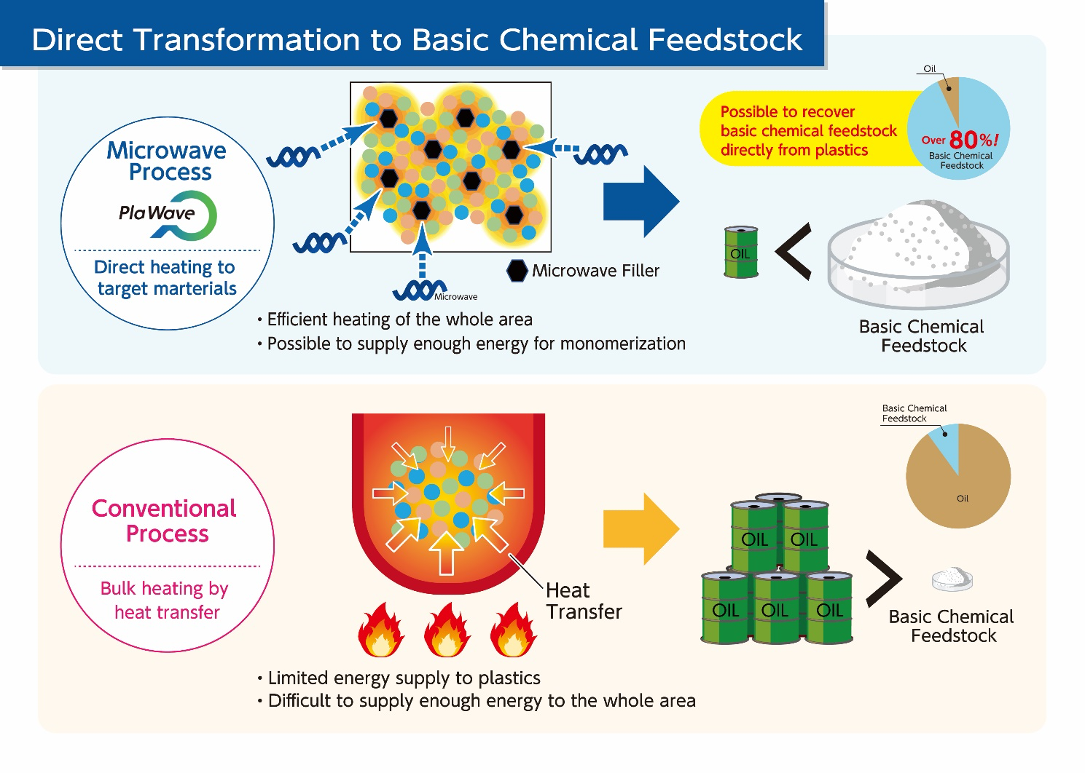 In the area of chemical recycling, the company has established “PlaWaveTM,” a platform of microwave-based plastic decomposition technology, thereby dealing with various types of plastic.